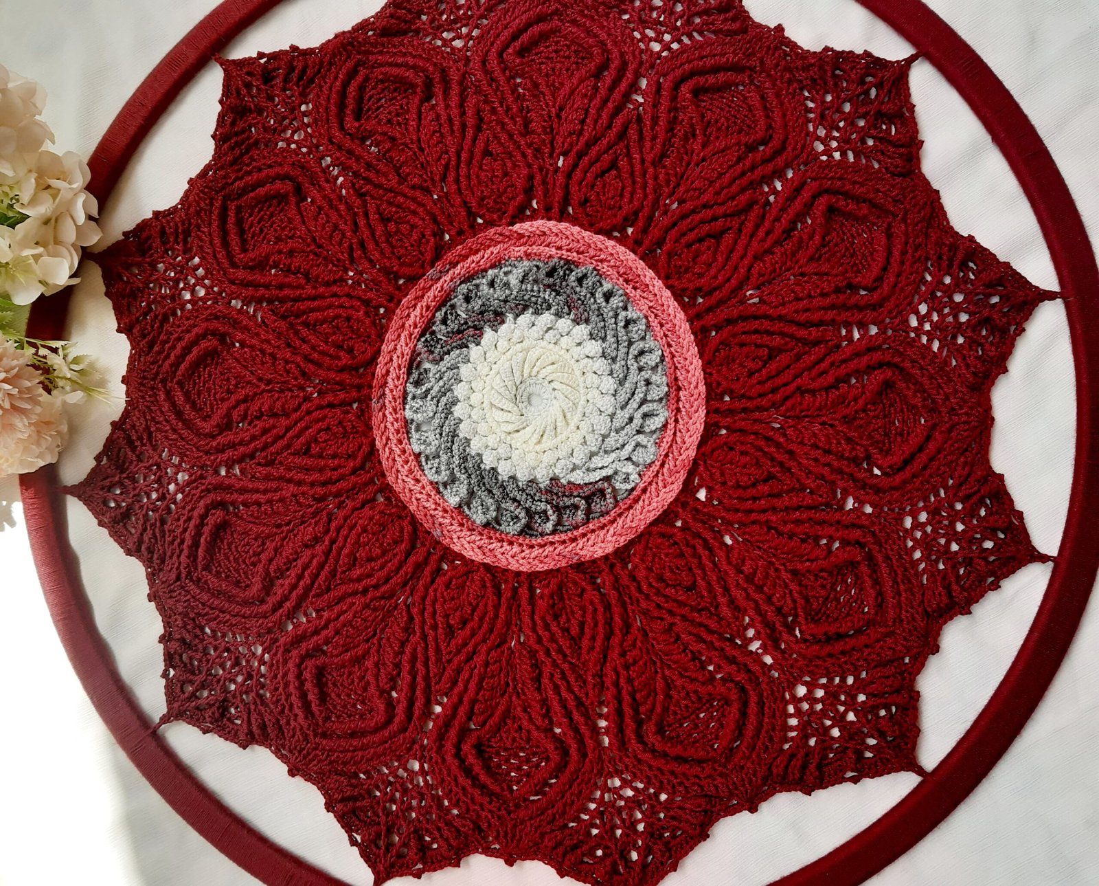 A beautifully crafted crochet doily, designed to bring elegance and charm to your home. Perfect for decorating tables, trays, or adding a vintage touch to any space. Made with care, soft yarn, and intricate detailing that makes every piece unique.